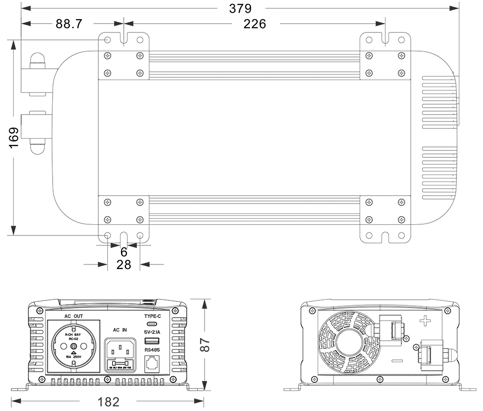 Rysunki mechaniczne:(379x182x87mm)