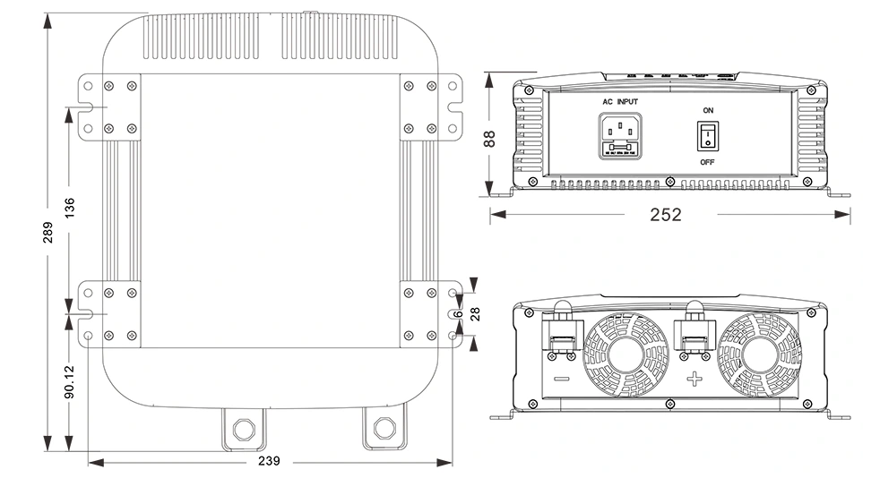 Rysunki mechaniczne:(289×252×88mm)