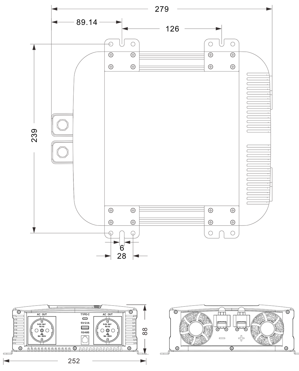 Rysunki mechaniczne:(279x252x88mm)