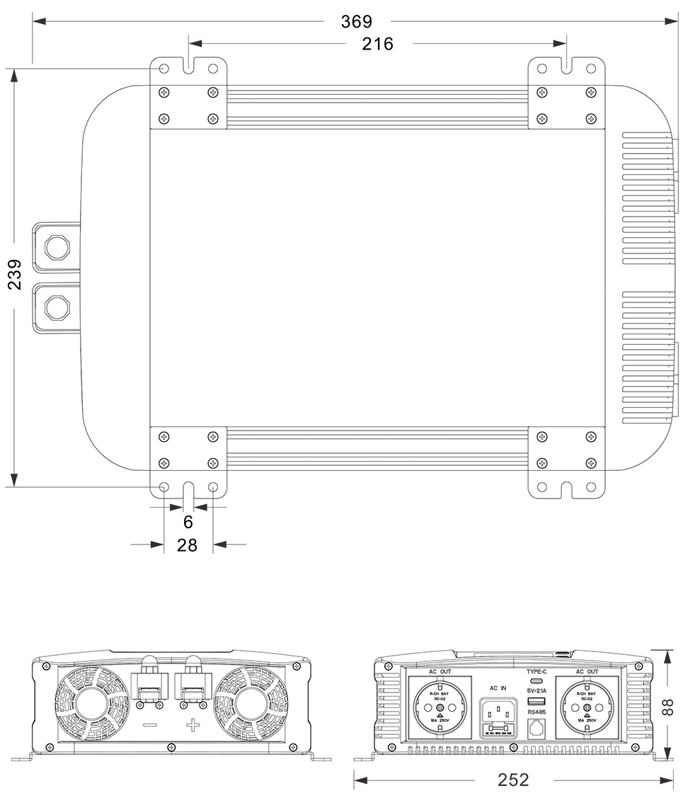 • Falownik sinusoidalny o mocy 2500 W z funkcją obejścia HK2500PTFalownik sinusoidalny o mocy 2500 W z funkcją obejścia HK2500PT