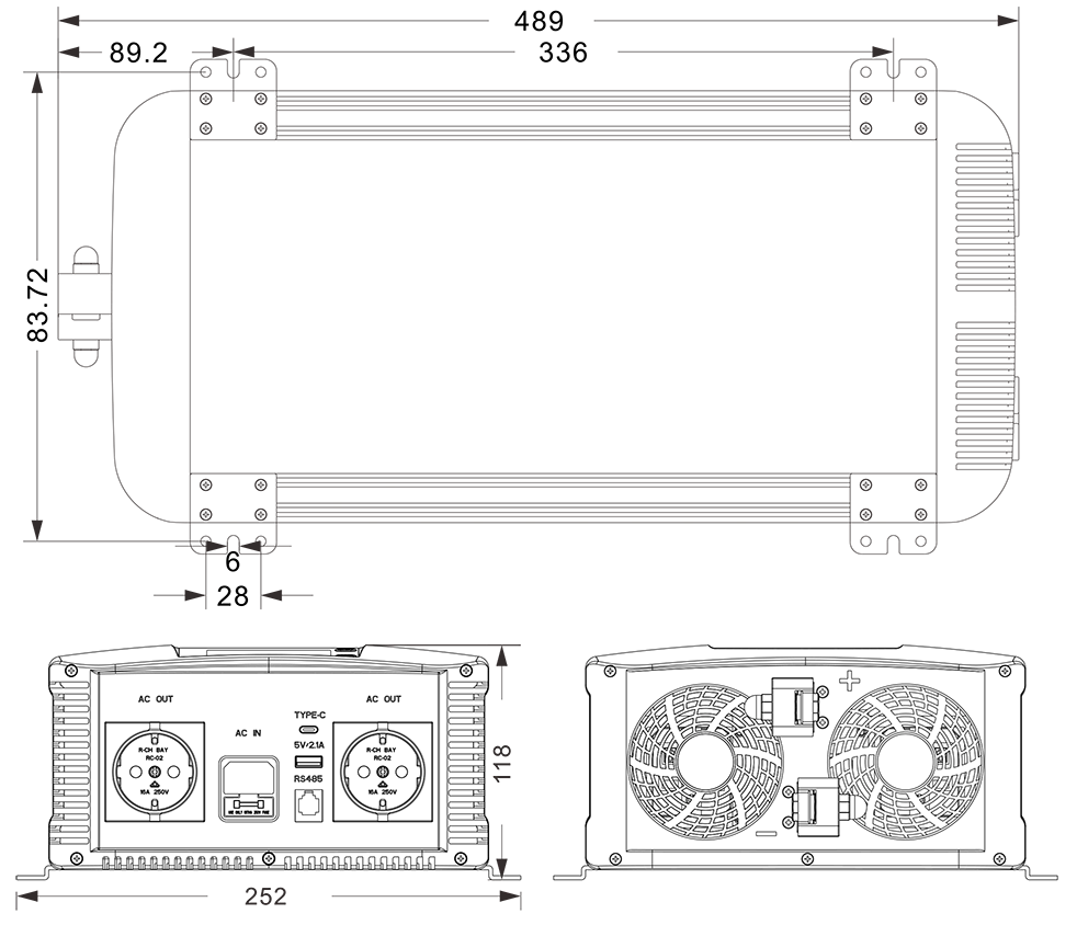 Inni Wymiary (szer. × wys. × gł.) 489×252×118mmmm