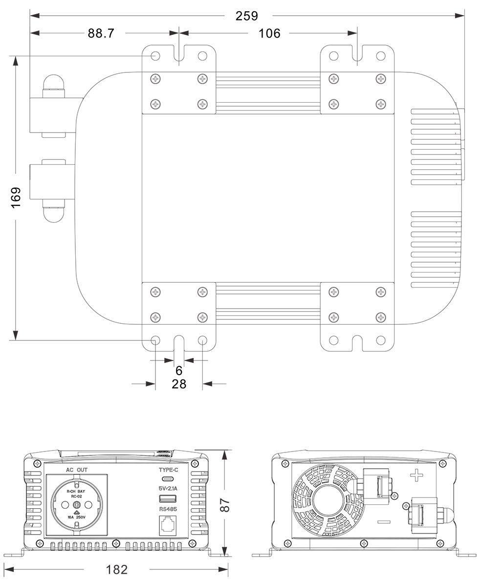 Rysunki mechaniczne:(259x182x87mm)
