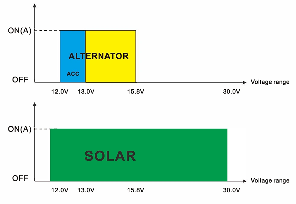 Napięcie wejściowe Ładowanie energią słoneczną Ładowanie generatora samochodowego